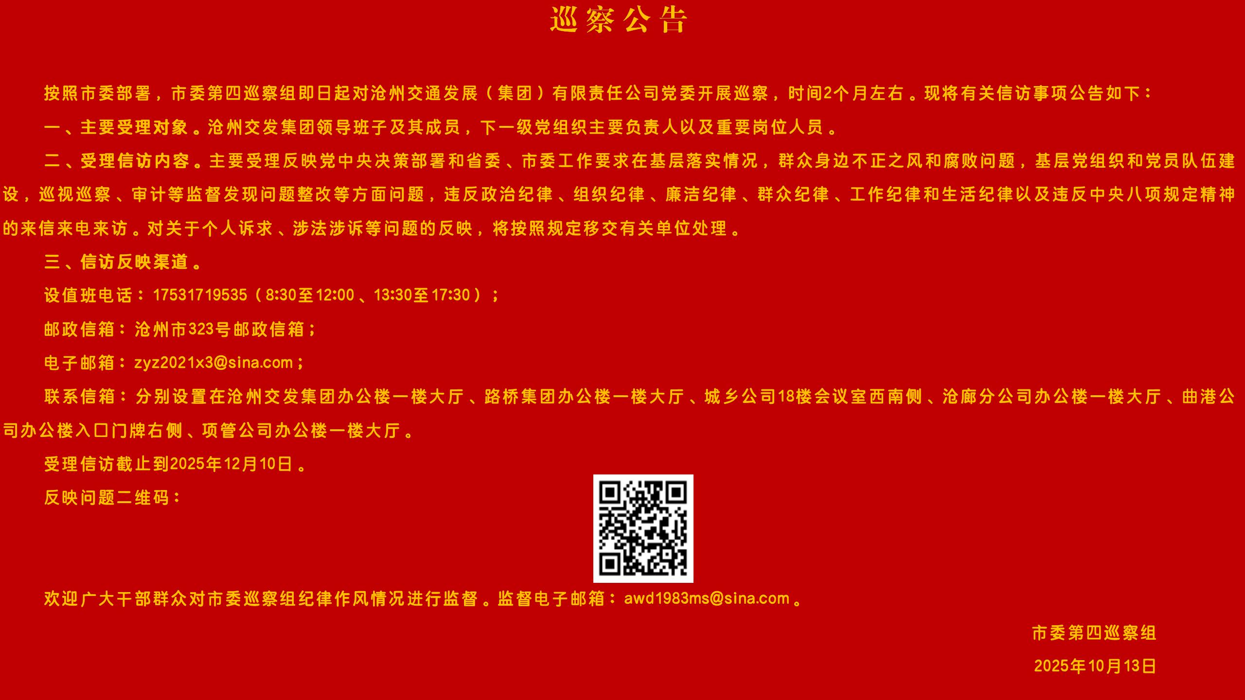 市委第四巡察組巡察 滄州交通發(fā)展(集團)有限責(zé)任公司黨委 工作動員會召開 2025-10-17